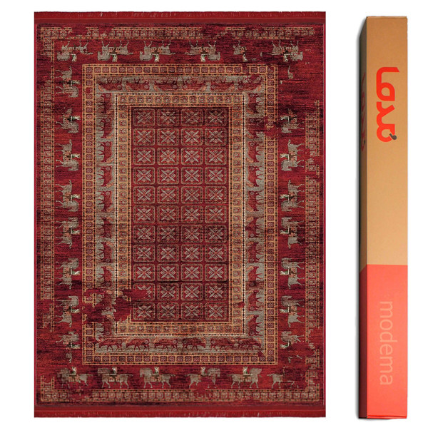 فرش ماشینی 200 شانه مدما زمینه قرمز لاکی حاشیه قرمز لاکی مدل پازیریک