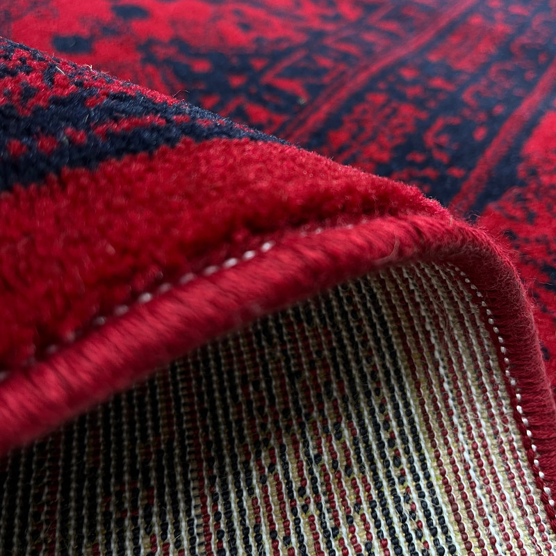 فرش ماشینی 500 شانه زمینه قرمز لاکی حاشیه قرمز لاکی مدل بلوچ کد ۱۲