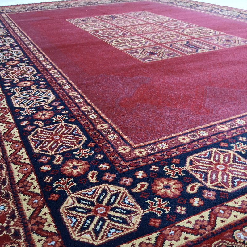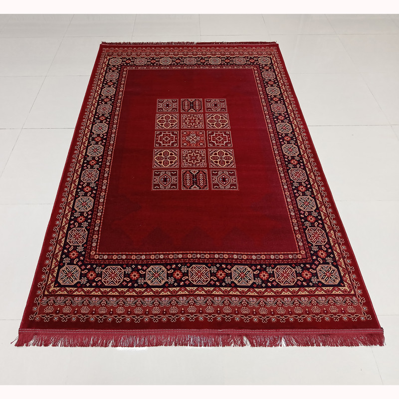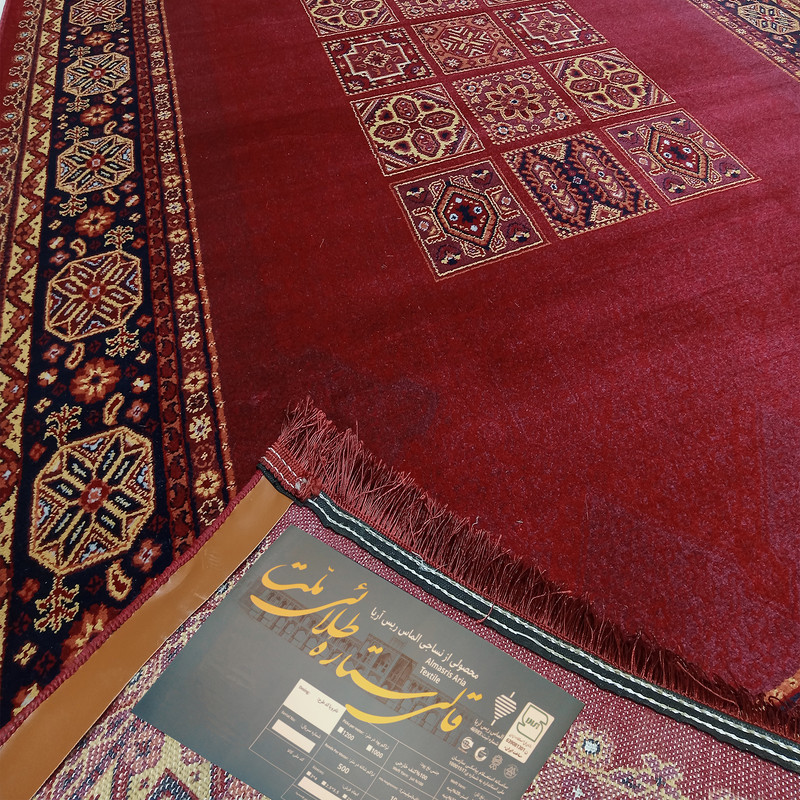 فرش ماشینی 500 شانه ستاره طلایی ملت زمینه قرمز لاکی حاشیه لاکی مدل بلوچ 114