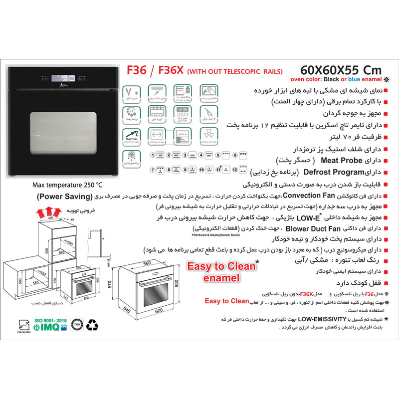 استفاده از لعاب Easy to Clean جهت پوشش کلیه قطعات داخلی اعم از تنوره، فر، سینی و ...