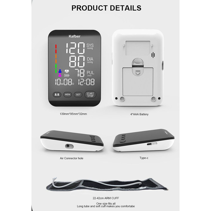 مدل U81CH طراحی کافبر آلمان دارای مجوز FDA ، CE و IMED کارایی و طول عمر بالا قابلیت تشخیص آریتمی قابلیت نمایش فشار خون قابلیت نمایش ضربان قلب دارای صفحه نمایش LED بزرگ و خوانا دارای منبع تغذیه الکتریکی ( 4 عدد باتری نیم قلم ) خاموشی خودکار 3 دقیقه بعد عدم استفاده ( AUTO ON/OFF ) قابلیت ذخیره گزارش اطلاعات 2 نفر در حافظه با تاریخ (روز،ماه،سال)