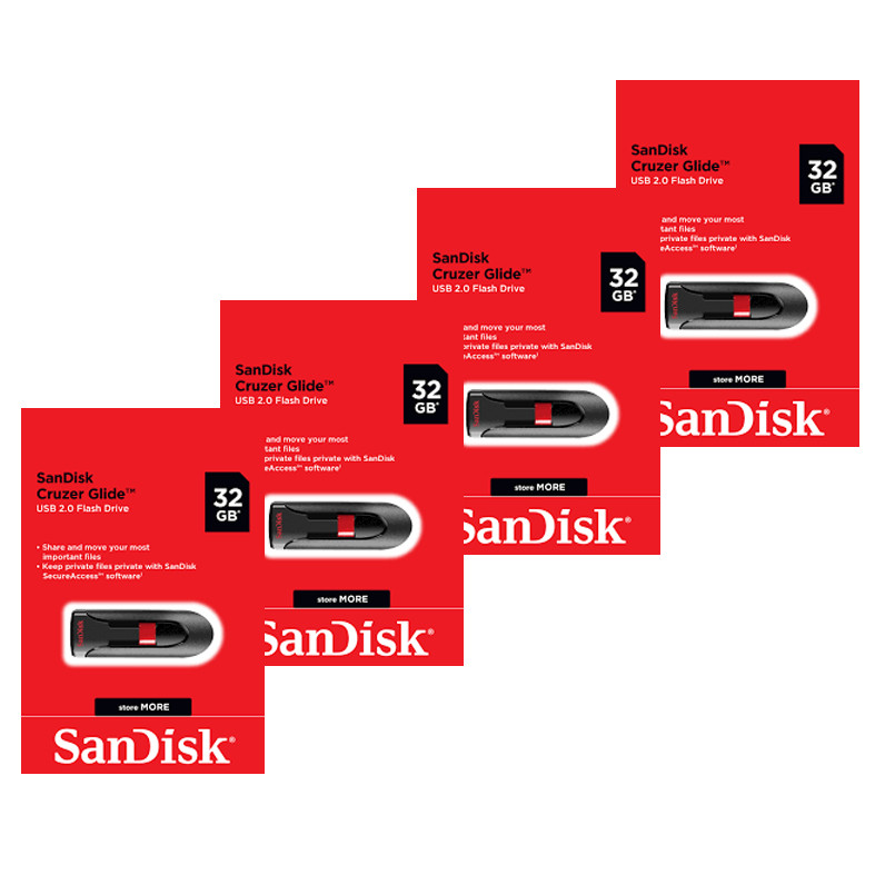 فلش مموری سن دیسک مدل CRUZER GLIDE CZ60 ظرفیت 32 گیگابایت بسته 4 عددی