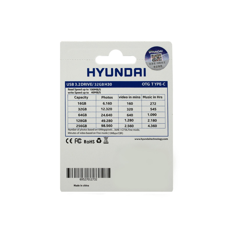 فلش مموری هیوندای مدل H30 3.2 ظرفیت 32 گیگابایت با رابط USB 3.2