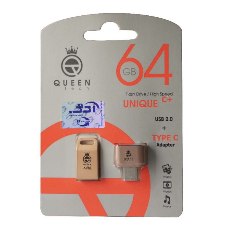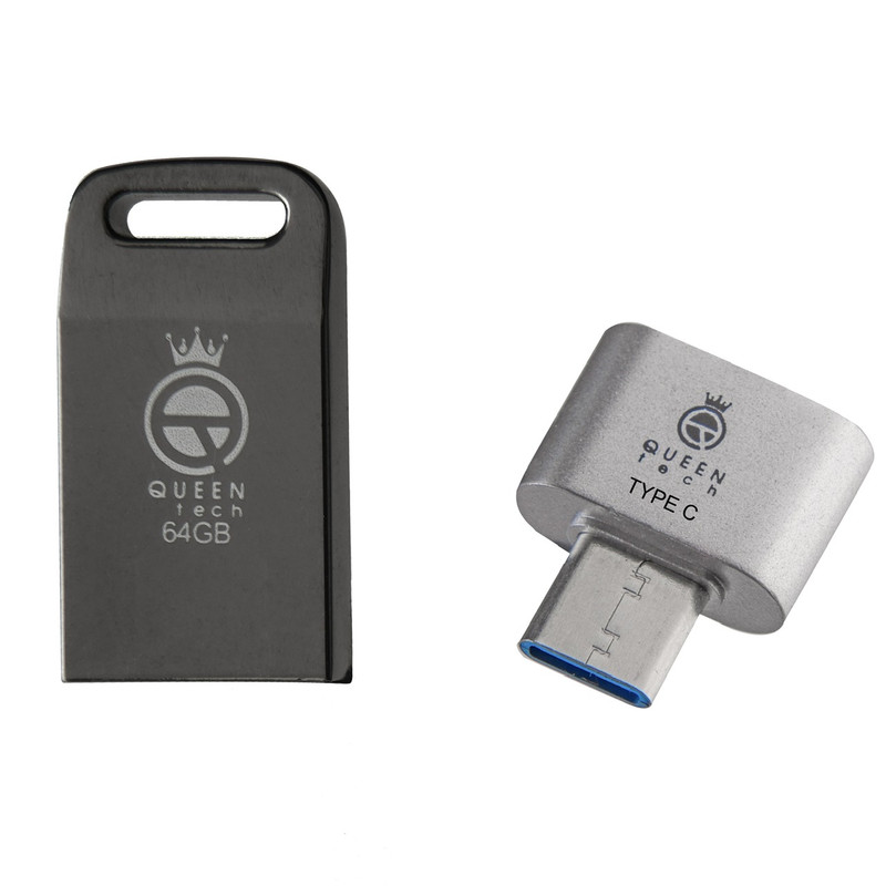 فلش مموری کوئین تک مدل UNIQUE C-PLUS ظرفیت 64 گیگابایت به همراه مبدل USB-C OTG