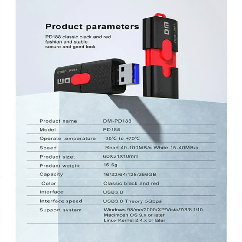 فلش مموری USB 3 دی ام مدل PD188 ظرفیت 128 گیگابایت