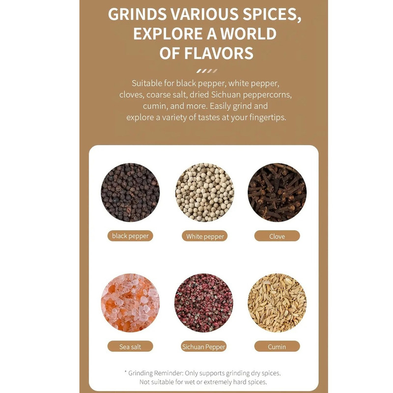 مناسب برای نمک، فلفل و انواع ادویه مانند زیره، رزماری و پرک فلفل قرمز