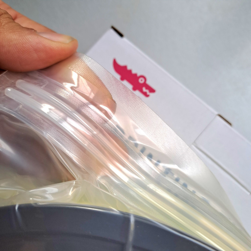 دارای گیره نگهدارنده انتهای مواد اولیه بر روی رول، پاکت زیپ کیپ دار برای حفظ کیفیت فیلامنت، تگ مقوایی برای جلوگیری از گره خوردن فیلامنت
