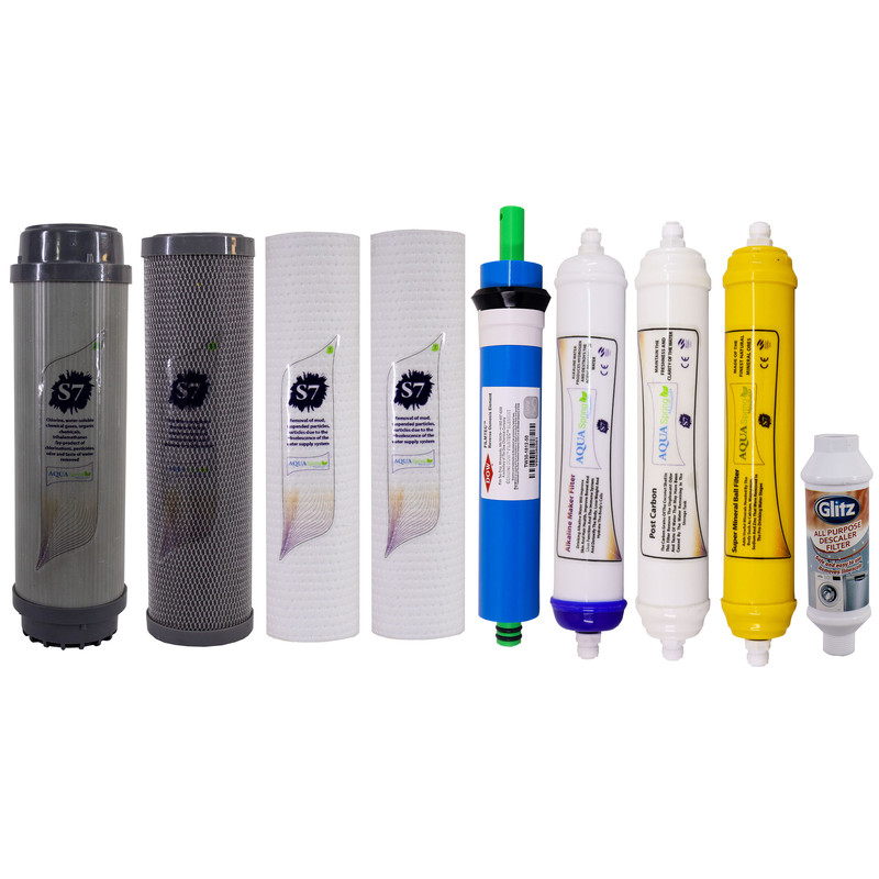 فیلتر دستگاه تصفیه آب آکوآ اسپرینگ مدل F-S7-H9L مجموعه 9 عددی به همراه رسوبگیر گلیتز