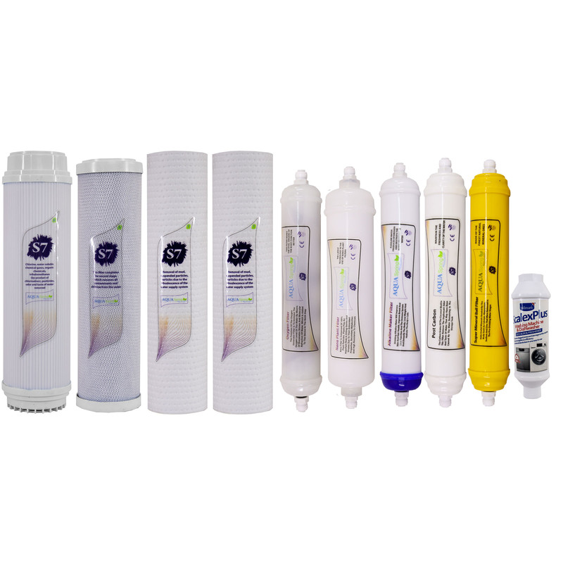 فیلتر دستگاه تصفیه آب آکوآ اسپرینگ مدل F-S7-W10Q مجموعه 9 عددی به همراه رسوبگیر اسکالکس پلاس
