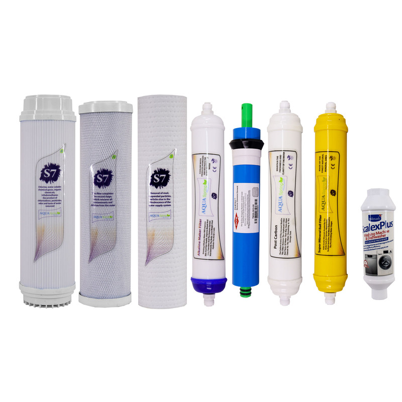فیلتر دستگاه تصفیه آب آکوآ اسپرینگ مدل F-S7-W8A مجموعه 8 عددی به همراه رسوبگیر اسکالکس پلاس