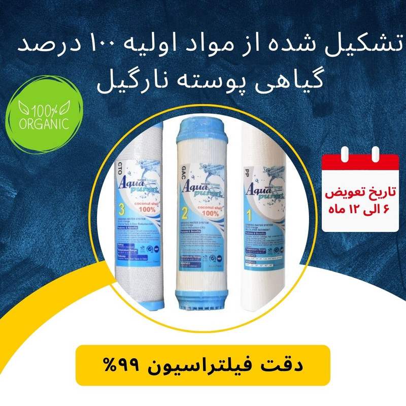 فیلتر دستگاه تصفیه آب آکوا پیورست مدل COCONUT SHELL 100 مجموعه 3 عددی