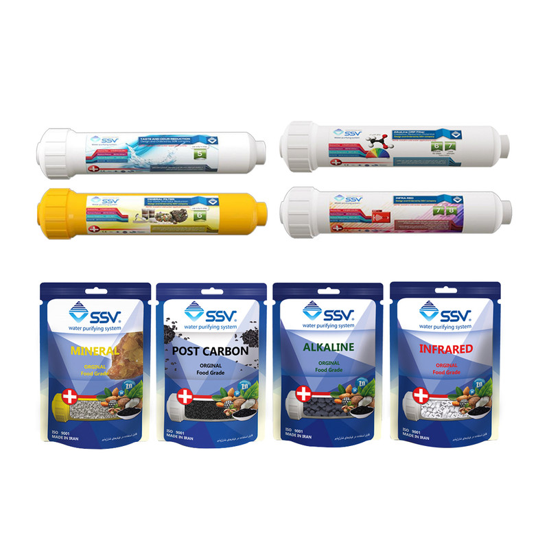 فیلتر دستگاه تصفیه آب اس اس وی مدل P.M.A.I مجموعه 4 عددی به همراه شارژ یدک وزن 140 گرم مجموعه 4 عددی