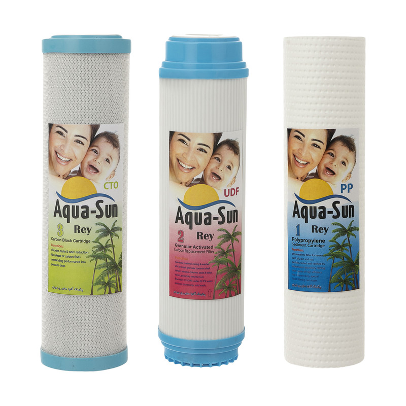 فیلتر دستگاه تصفیه آب خانگی مدل آکوا سان ری بسته سه عددی، قابل نصب در تمام دستگاه های تصفیه آب می باشد.