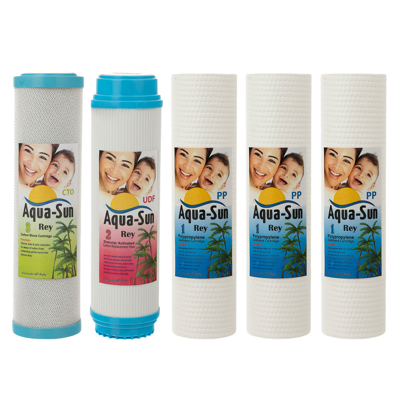فیلتر دستگاه تصفیه آب خانگی مدل آکوا سان ری مجموعه 5 عددی، قابل نصب در تمام دستگاه های تصفیه آب می باشد.