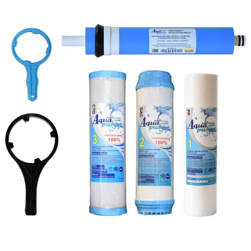 فیلتر دستگاه تصفیه کننده آب آکوا پیورست مدل AP-07 مجموعه 7 عددی به همراه کپسول فاضلاب مدل FLOW 300