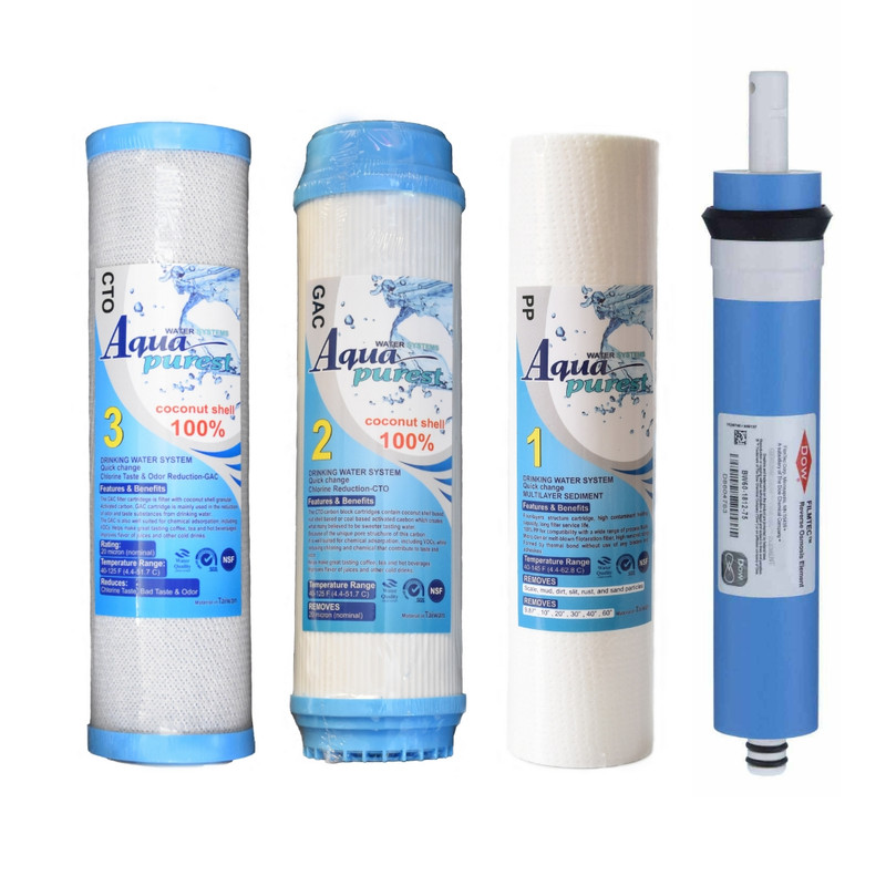 فیلتر دستگاه تصفیه کننده آب آکوا پیورست مدل PAC-RO مجموعه 3 عددی به همراه فیلتر فیلمتک مدل 001
