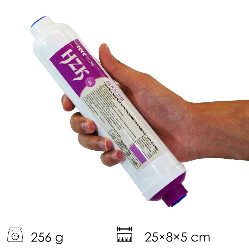 فیلتر قلیایی کننده 10 اینچ HZK با افزایش PH آب به محدوده قلیایی (7 الی 9) و افزودن مواد معدنی، کیفیت و طعم آب خروجی دستگاههای تصفیه آب خانگی را بهبود میبخشد.
