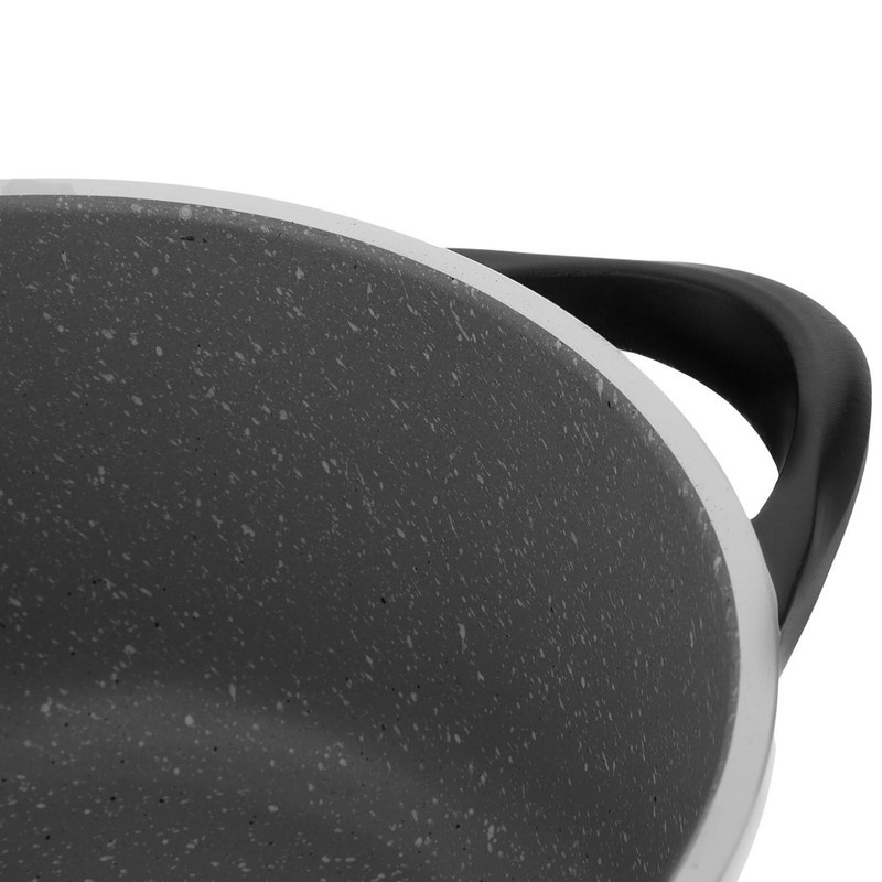 قابلمه تک طرح ایتالیا سایز 16 روکشی از جنس گرانیت نچسب دارد که به آشپزی آسان و بیدردسر کمک میکند. درب این محصول از جنس پیرکس است.