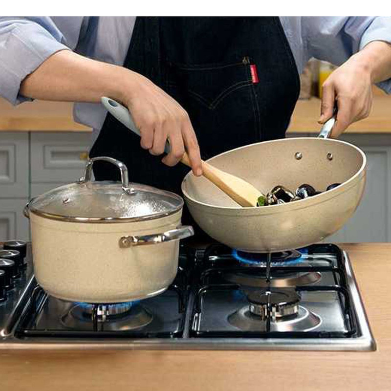 - ماده اولیه پوشش سخت و آتشفشانی با تکنولوژی برتر آلمان در آلمان تولید می شود.(از مواد کاملا طبیعی با فناوری سازگار با محیط زیست تولید شده ، با استفاده از روغن بسیار کمی با پوشش PTFE گرانیت و مقاومت در برابر پوشش خارجی سیلیکون ، غذاهای خوشمزه درست می کند.)