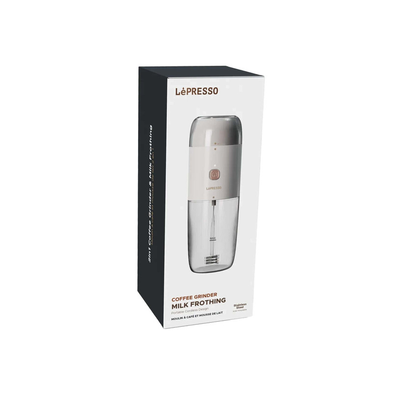 قهوه ساز لپرسو مدل دستگاه دو کاره فوم ساز شیر و آسیاب قهوه لپرسو مدل LePresso LPMFGRWH 2IN1 Portable Milk Frother