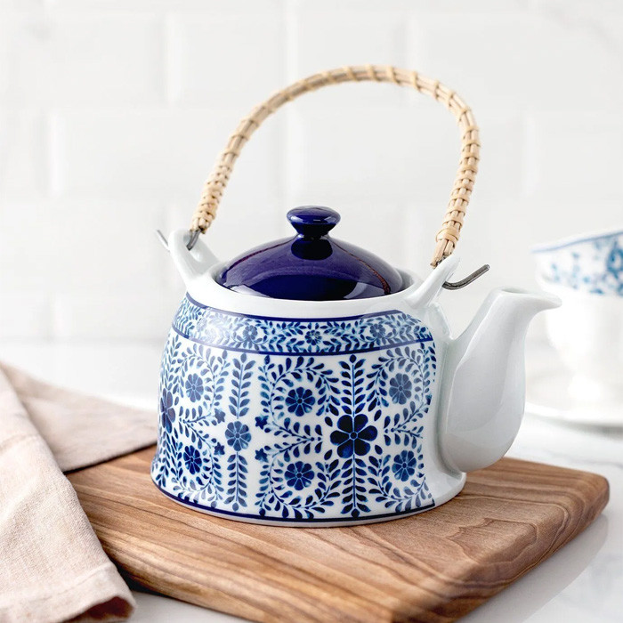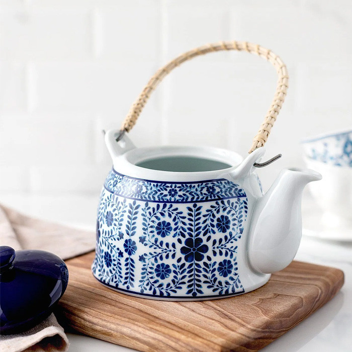 طراحی سنتی با نقش و نگار آبی: زیباییای الهامگرفته از هنر اصیل، مناسب برای میز پذیرایی.