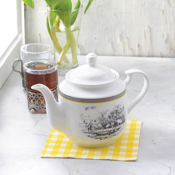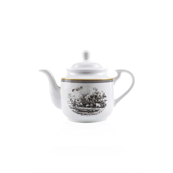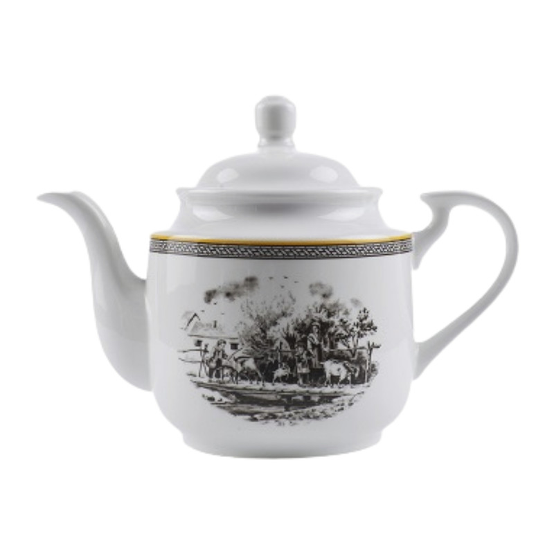 قوری چینی زرین ایران مدل چای استوانه کوچک 3 ویلیج درجه 3 گنجایش 450 میلیلیتر