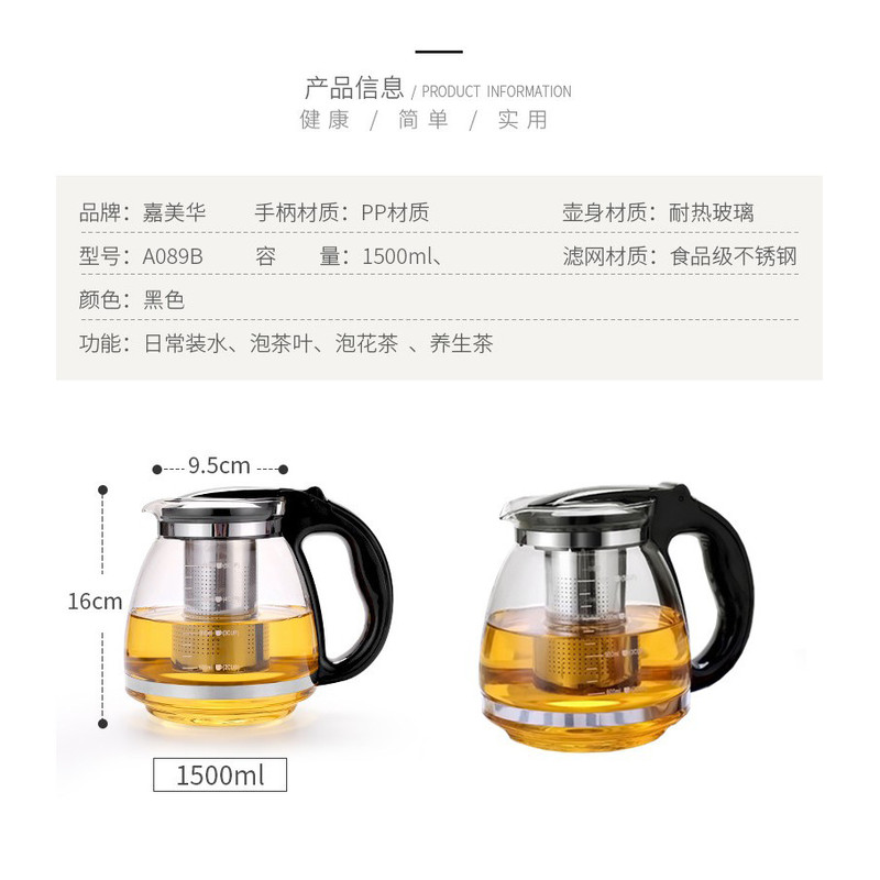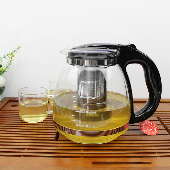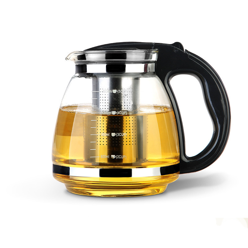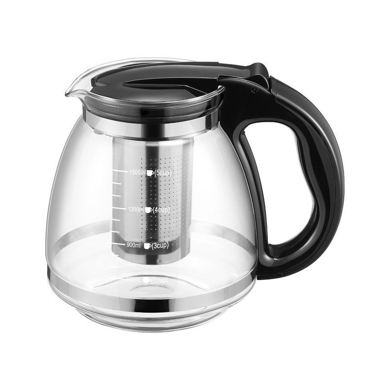 قوری شیشه پیرکس با کیفیت بالا-شیشه ای شفاف-دسته پلاستیک بهداشتی-فیلتر استیل ضد زنگ-حجم 1500 میلی لیتر -مناسب کتری٬سماور٬چایساز-جایگزینی عالی برای قوری یدک چایساز.
