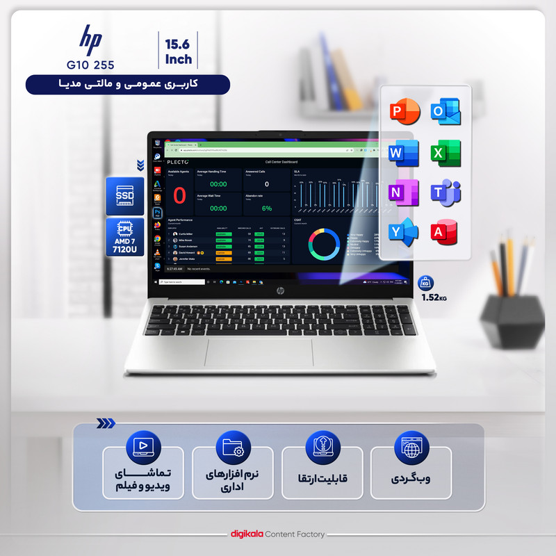 لپ تاپ 15.6 اینچی اچ پی مدل G10 255-Athlon Silver 7120U-8GB DDR4-512GB SSD-TN