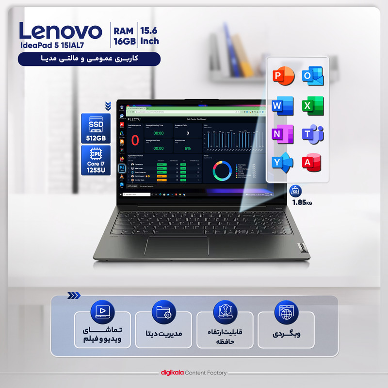 لپ تاپ 15.6 اینچی لنوو مدل IdeaPad 5 15IAL7-i7 1255U 16GB 512SSD MX550