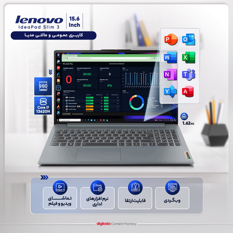 لپ تاپ 15.6 اینچی لنوو مدل IdeaPad Slim 3 15IRH8-i7 13620H-16GB LPDDR5-512GB SSD-IPS-Fingerprint-Backlit