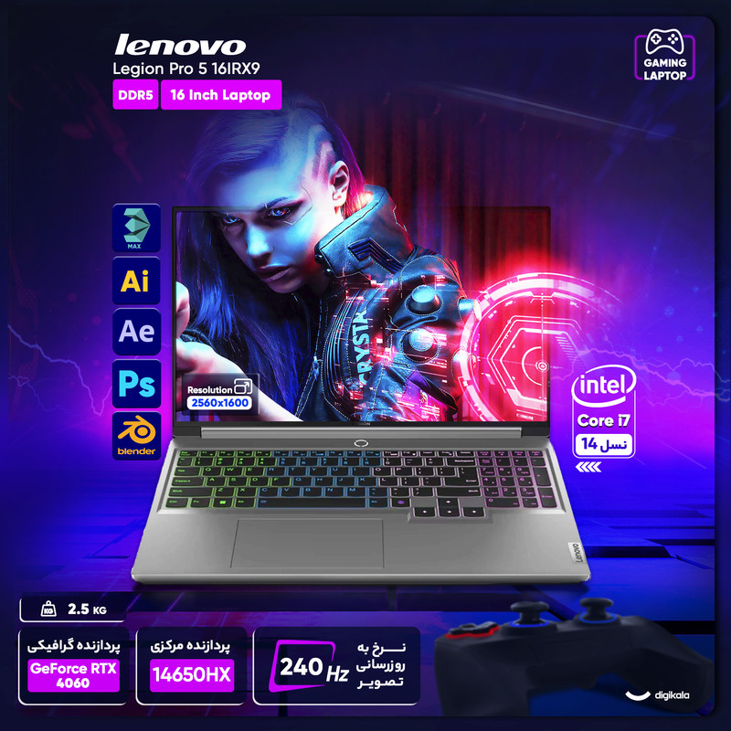 لپ تاپ 16 اینچی لنوو مدل Legion Pro 5 16IRX9-i7 14650HX-24GB DDR5 5600MHz-1TB SSD-RTX4060-QHD 240Hz - کاستوم شده