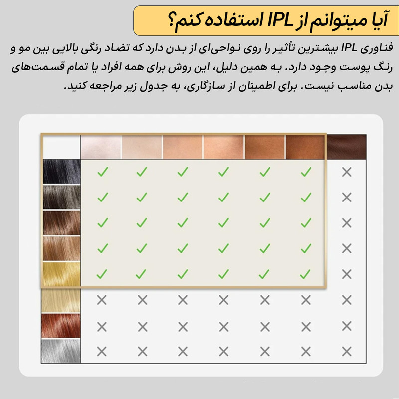 "دستگاه از فناوری IPL 3.0 با طول موج 570 تا 1100 نانومتر استفاده میکند که باعث نفوذ سریعتر نور قرمز به ریشه مو شده و تأثیر بهتری در کاهش رشد موها دارد