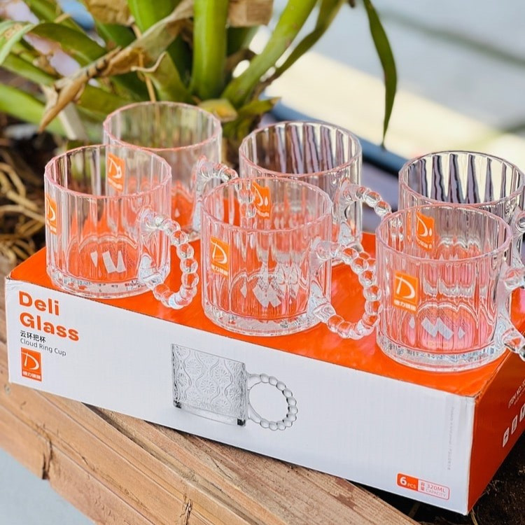 لیوان دلی مدل دسته مرواریدی کد 4301B مجموعه 6 عددی