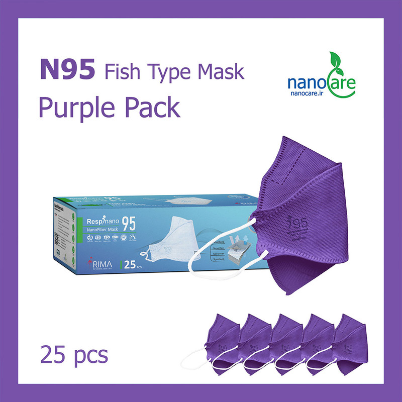 ماسک تنفسی ریما مدل سه بعدی N95 نانو کد Perple-F95 بسته 25 عددی