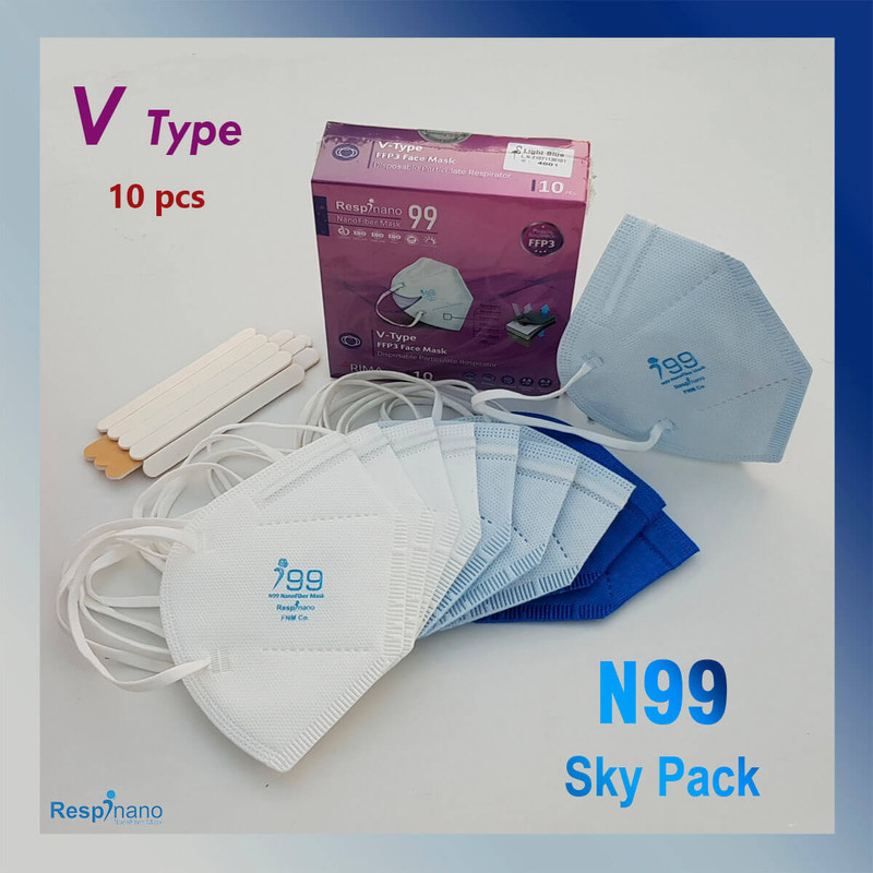 ماسک تنفسی ریما مدل وی تایپ N99 نانو کد Bluee-V99 بسته 10عددی