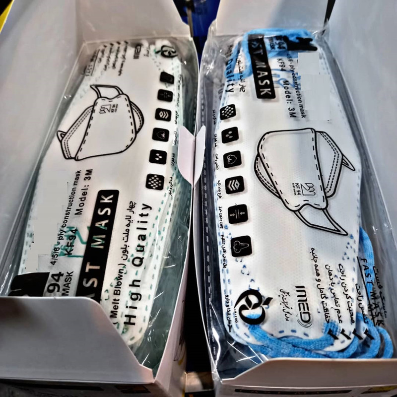 -لوگو FAST MASK چاپ شده بر روی جعبه و حک شده بر روی خود ماسک و ثبت شده می باشد
