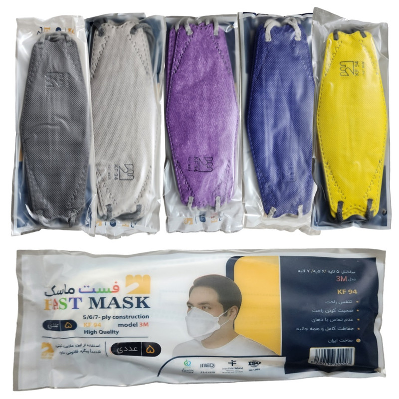 ماسک تنفسی فست مدل سه بعدی شش لایه Fast کد رنگارنگ تیره بسته 30 عددی