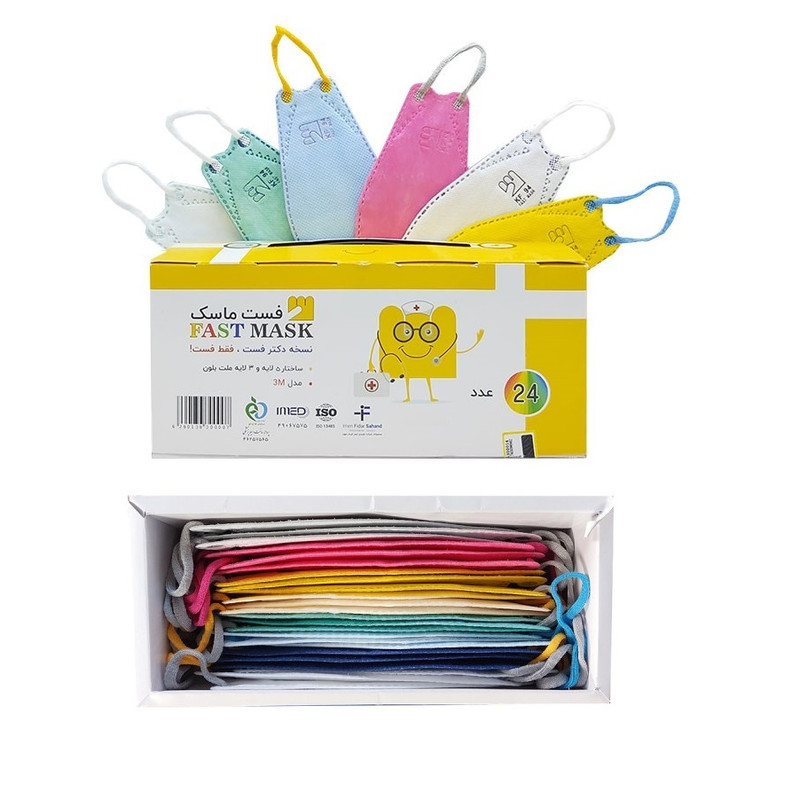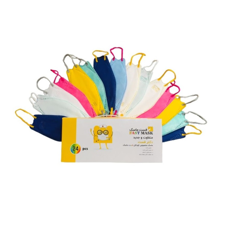 ماسک تنفسی کودک دکتر فست مدل 3 بعدی 5 لایه رنگارنگFAST-KF94 جعبه 24 عددی