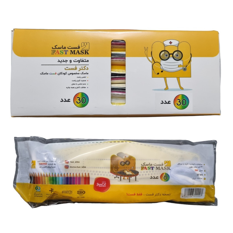 ماسک تنفسی کودک فست ماسک مدل سه بعدی بسته 30 عددی