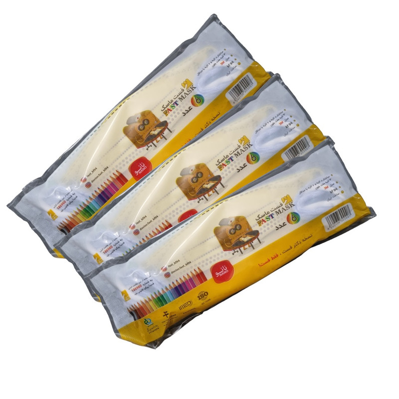 ماسک تنفسی کودک فست مدل 3 بعدی مدادرنگی پسرانه 5 لایه بسته 30 عددی