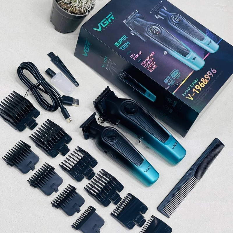 ست vgr V-196 & 996 ، تکنولوژی اصلاح: برش مستقیم - با حالت توربو دور موتور ، نمایشگر دیجیتال: قابلیت نمایش درصد شارژ - هشدار کمبود روغن تیغه ها و کمبود ظرفیت باتری - دور موتور ، منبع تغذيه: باتری قابل شارژ ، نوع موتور: روتاری - توربو دار ۷۰۰۰ دور ، ظرفیت باتری: ۲۰۰۰ میلی آمپر حجم زن ۱۶۰۰ میلی آمپر خطزن ، زمان شارژ: ۳ ساعت حجم زن ساعت خطزن ۳ ، شارژ دهی: ۲۰۰ دقیقه حجم زن ۳۰۰ دقیقه خط زن ، جنس تیغه: سرامیکی با پوشش تيتانيوم - دقت و قدرت برش بالا ، نوع تیغه ثابت: نوع فلت یا صاف - با قدرت حجم زنی بالا ، نوع تیغه متحرک حجم زن: نوع منظم - مناسب فيد روشن و بلوری ، اهرم تغییر اندازه اصلاح: ۰.۵ تا ۳.۵ میلی متر ، جنس بدنه: پلاستیک مستحکم ABS طراحی ۲ رنگ زیبا و ارگونومیک ، خط زن قابلیت اصلاح با شماره صفر ، تیغه های خود تیز شونده دارد ، وزن دستگاه: ۴۳۰حجم زن - ۳۵۰ خط زن گرم ، صدا بسیار کم ، دور موتور بالا ، طراحی زیبا ، مناسب سالن و خانه