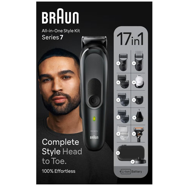 شارژی هر 60 دقیقه 100 دقیقه کارکرد - دارای 11 عدد شانه برای اصلاح صورت 1-2 میل - 3-21 میل - 1 شانه برای اصلاح حساس - 1 شانه برای اصلاح بدن - 1 شانه ابرو - 2 شانه فید - 2 شانه اصلاح سر 3-21 میل -سری موزن بینی و گوش -سری دیتیلر برای اصلاح زیر لب - دارای ژیلت - دارای تیغه PRO BRAUN خود تیز شونده - دوست دار پوست -100% ضد آب - دارای کیف - دارای پایه شارژ - فناوری AUTO SENSE -