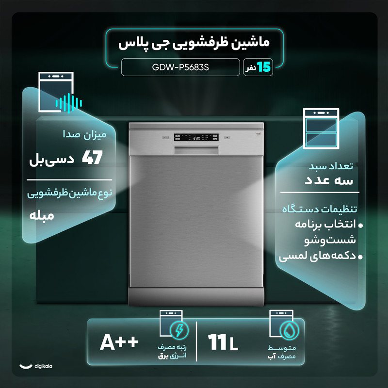 ماشین ظرفشویی 15 نفره جی پلاس مدل GDW-P5683S