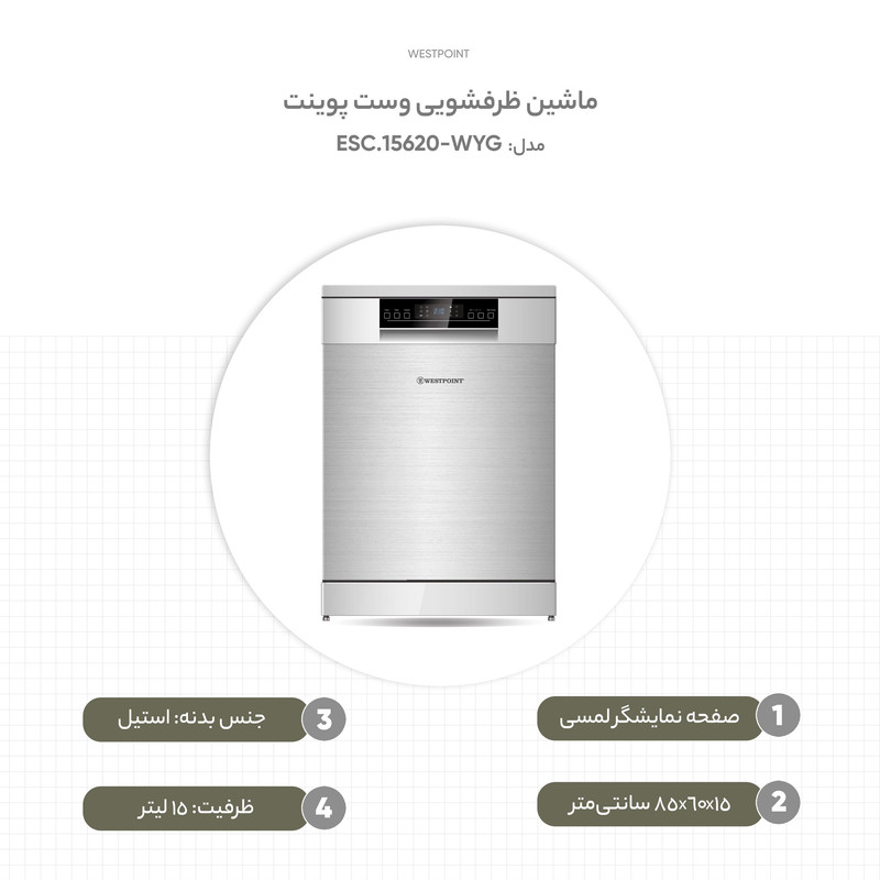 ماشین ظرفشویی 15 نفره وست پوینت مدل WYG-15620.ESC
