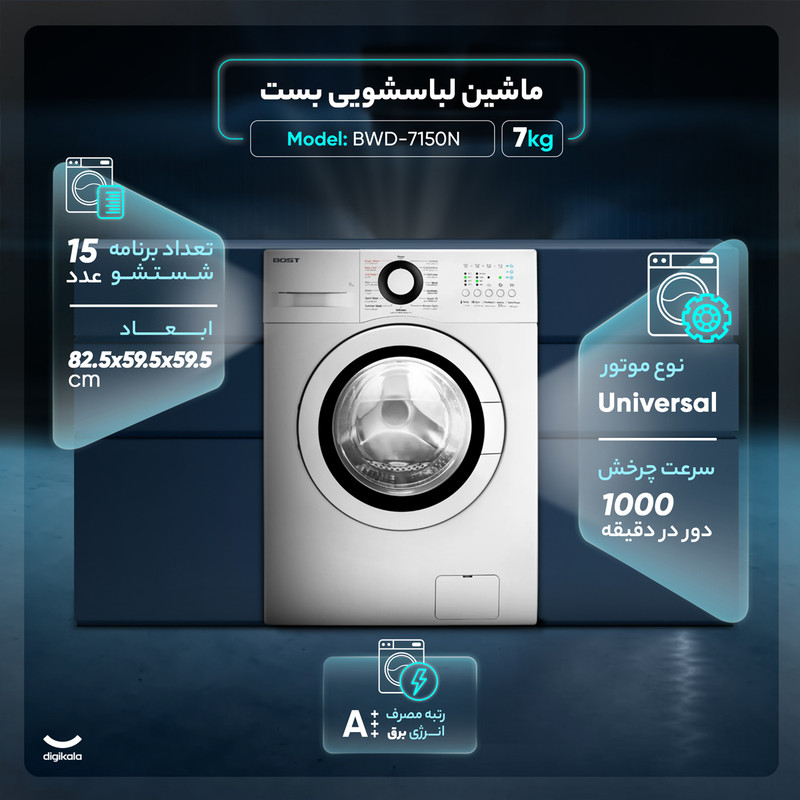 ماشین لباسشویی اتوماتیک بست مدل BWD-7150N ظرفیت 7 کیلوگرم