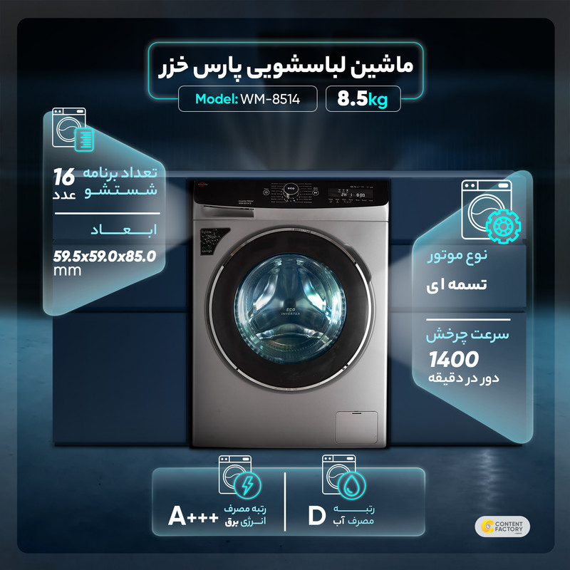 ماشین لباسشویی پارس خزر مدل WM-8514 ظرفیت 8.5 کیلوگرم