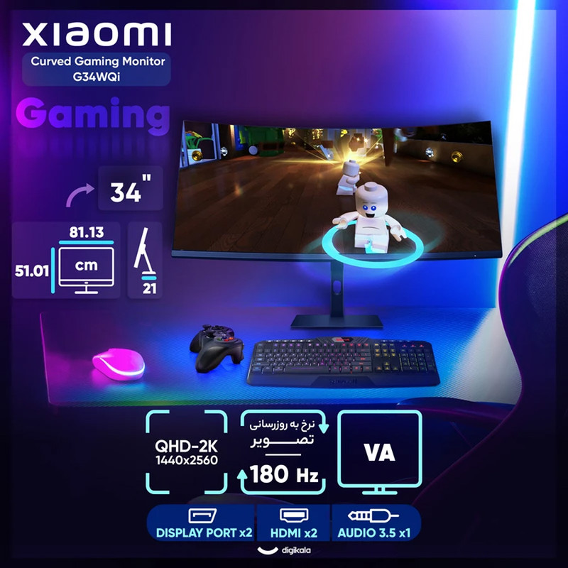 مانیتور خمیده گیمینگ 34 اینچ شیائومی مدل G34WQi