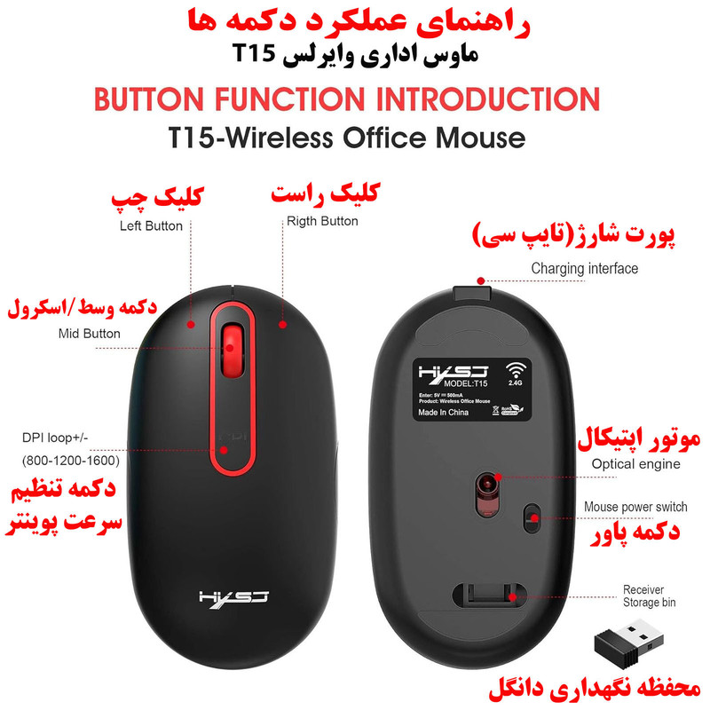 ماوس بی سیم اچ اکس اس جی مدل T15