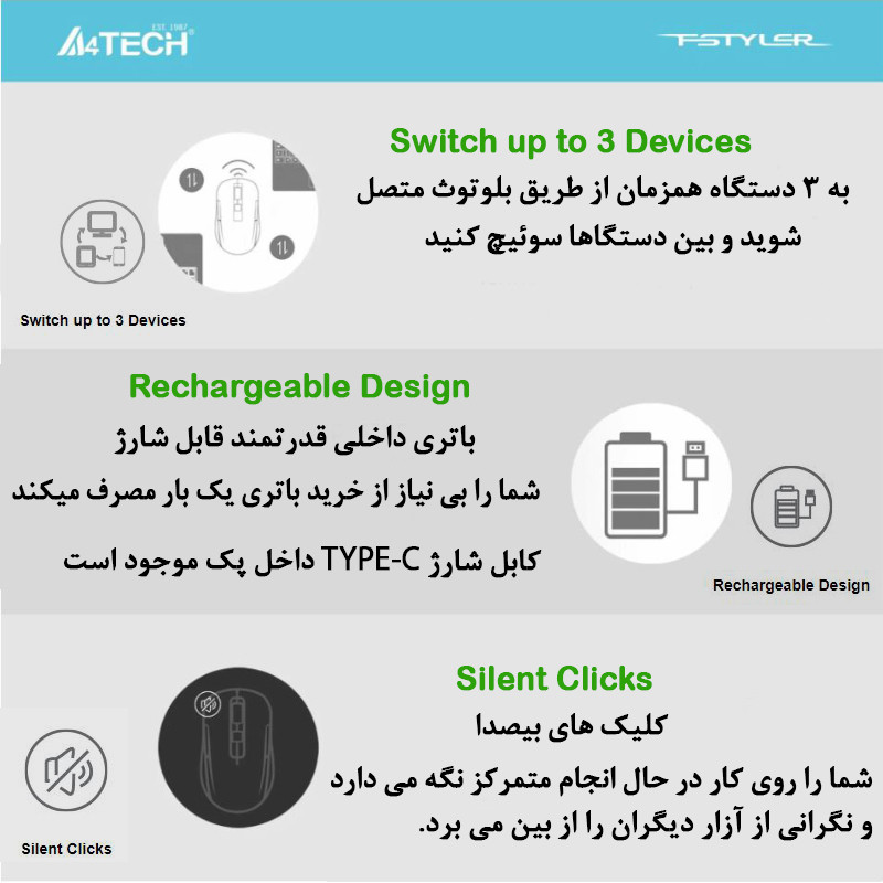 ماوس بی سیم ای فورتک مدل F_B_26_CS_AIR_SILENT