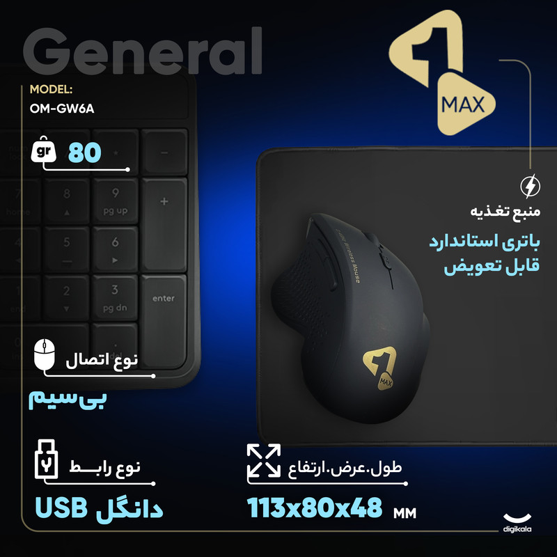 ماوس بی سیم وان مکس مدل OM-GW6A
